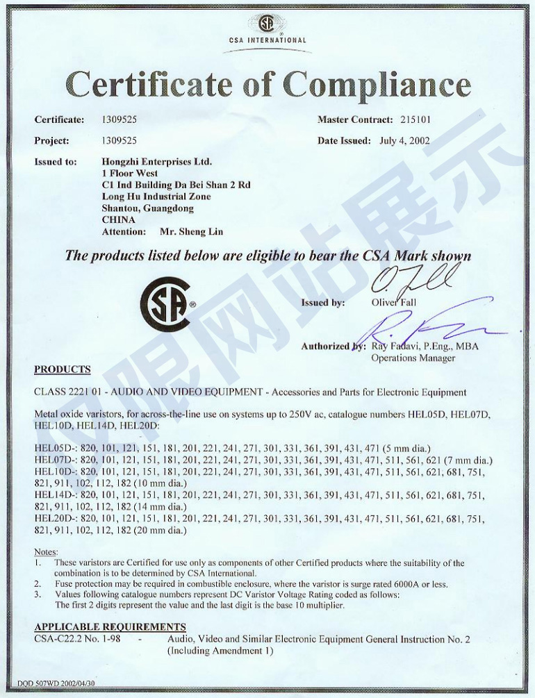 廣東鴻志電子科技有限公司成立于1993年,位于美麗的海濱城市汕頭,現(xiàn)已發(fā)展成為元器件制造集團企業(yè),生產(chǎn)壓敏電阻、NTC熱敏電阻、陶瓷電容和金屬化薄膜電容,通過了ISO9001質(zhì)量體系認證和ISO14001環(huán)境體系認證,以及IATF16949汽車產(chǎn)品質(zhì)量體系認證...